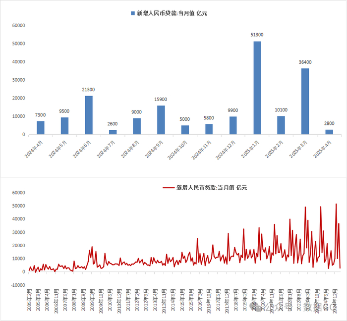 4月新增人民币贷款2800亿元,是2024年7月以来的最低值,环比少增3.36万亿元。