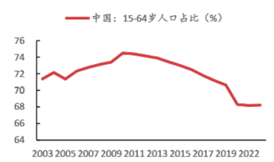 企业订单爆满,反映出市场对于人形机器人的巨大需求。的确,目前国内老龄化社会特征逐渐凸显,用工成本的升高自然必然使得企业对于自动化的需求提升。根据国家统计局数据显示,24年我国15-64岁人口占比约为68.22%,虽然占比依旧较大,但是这一数据已经连续多年下滑。劳动力供给的减少将直接推高用工成本,倒逼国内产业自动化,而人形机器人产业的蓬勃发展也顺应了这一趋势。