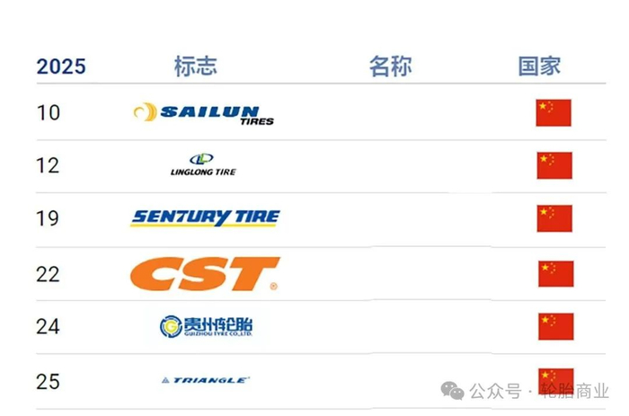 《2025全球轮胎品牌价值25强》同样也有多家国内轮胎品牌入围。