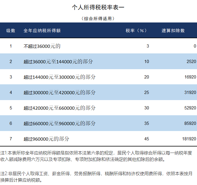 附:个人所得税税率表