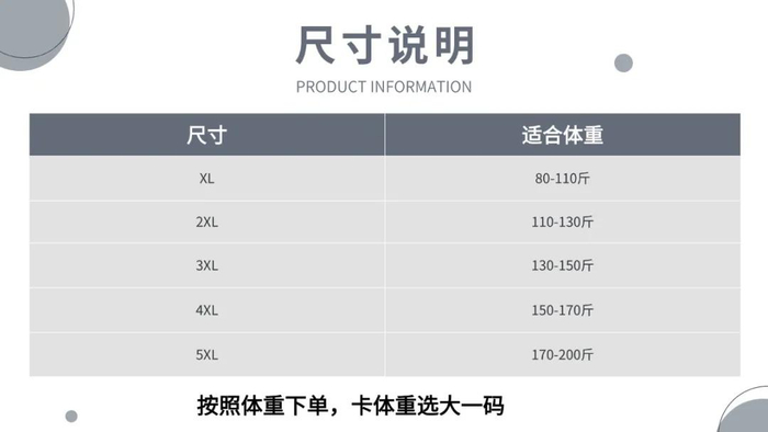 码数从XL到5XL,大家可以根据自己的需求选择合适的码数哦~~