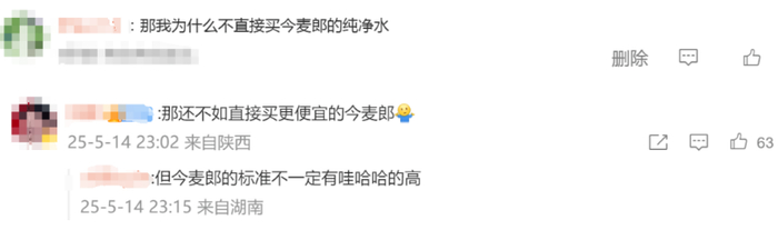 对此,有网友表示:“那我为什么不购买今麦郎的纯净水?”