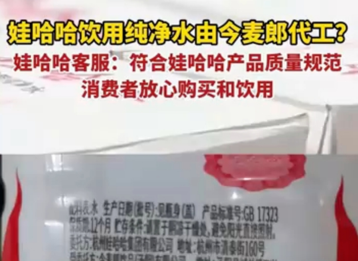娃哈哈客服还表示,目前市场上在售的娃哈哈纯净水均符合国家质量标准及我司产品质量管理标准,请消费者放心选购。未来,娃哈哈将始终坚持自有生产模式,通过更严苛的质量管控体系,全方位保障消费者的权益,为大家提供更优质、更安全的产品。