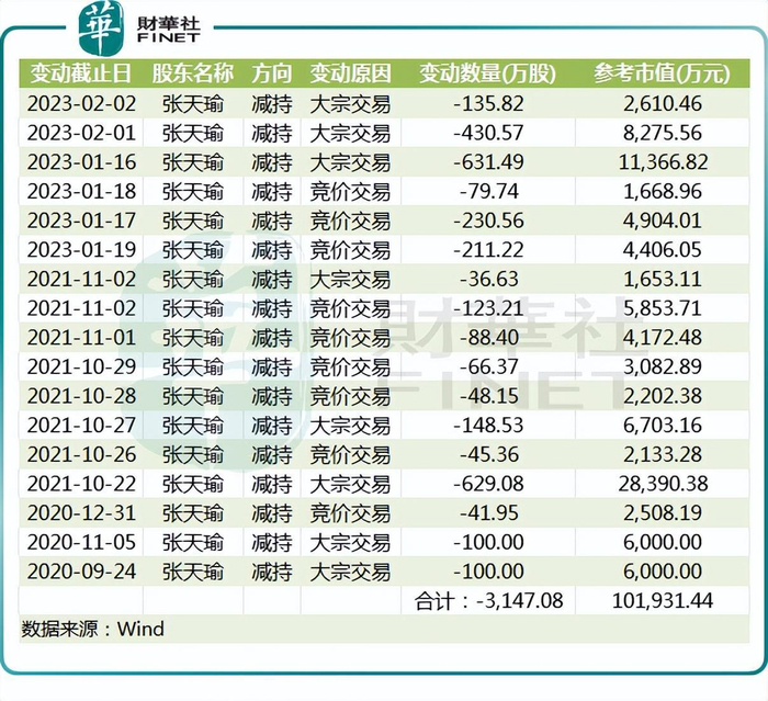 Wind数据显示,2020年9月至2023年2月期间,张天瑜多次减持广和通A股股份,累计减持17次,涉及3100多万股,减持金额总计超过10亿元。