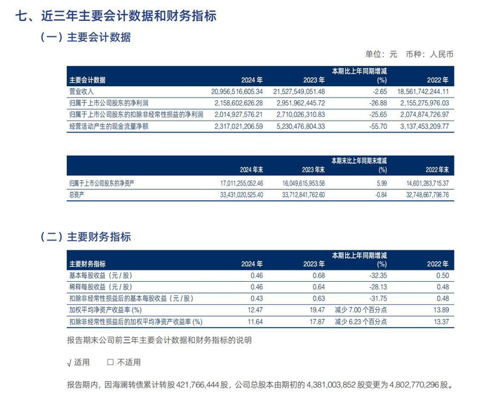 4月29日晚,海澜之家集团有限公司(以下简称“海澜之家”或“公司”,600398.SH)披露了2024年度报告。报告期,公司实现营业收入209.57亿元;归母净利润为21.59亿元;其中主品牌海澜之家实现营收152.70亿元;海澜团购实现营收22.24亿元,其他品牌实现营收26.68亿元。