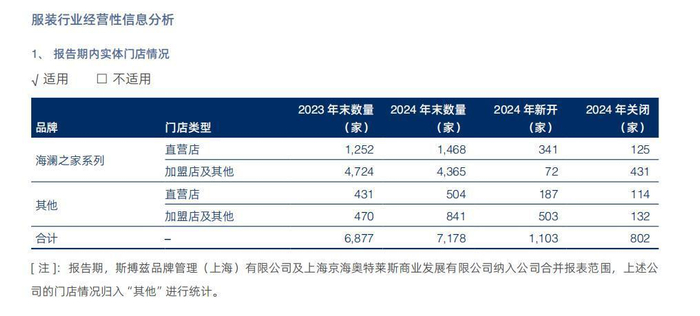 此外,海澜之家加强和全球优质品牌深度合作,打造多元化品牌矩阵,将更多优质品牌和优质商品带进更多人的生活,丰富人们的选择。通过与HEAD、阿迪达斯等国际知名品牌建立战略合作伙伴关系,拓展了运动装市场,分别在品牌运营、供应链管理和渠道运营上展开深度合作。斯搏兹作为海澜之家与阿迪达斯合作的业务板块,2024年开店近400家,覆盖了国内大部分主要城市。通过与阿迪达斯的合作,海澜之家不仅提升了自身在运动市场的份额,也为消费者带来了更多高品质的运动装备选择。