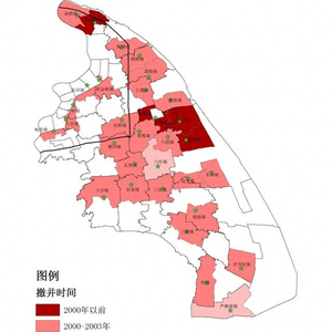 以浦东新区为例,自1993年建政以来,总计发生28次街镇撤并。其中,2000年之前仅有3次零星撤并;2003年后因浦东、南汇两区合并及兴建临港新城发生3次撤并;2000-2003年期间,为实施“三个集中”,在全区范围内撤并乡镇22次,涉及范围和后续影响均较为显著(图1)。
