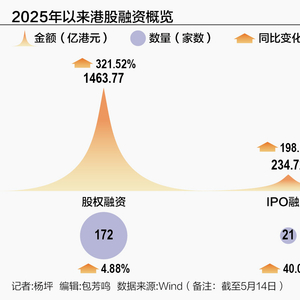 叠加港股市场多项创新制度发力,2025年港股IPO市场持续繁荣。Wind数据显示,截至5月14日,今年以来港股股权融资规模达1463.77亿港元,同比大增321.52%。其中,IPO融资额为234.72亿港元,同比增长198.33%。