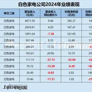 截至2025年4月30日,A股家用电器上市公司半年报已全部披露完毕。其中,以申万二级行业划分的白色家电行业在2024年共计实现营业收入10465.29亿元,实现归母净利润914.88亿元。