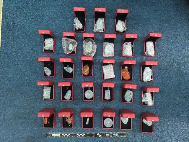 民警查获的部分涉案翡翠成品。