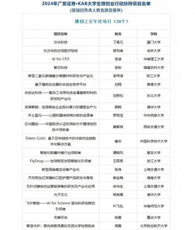 2024年广发证券·KAB大学生微创业行动扶持项目名单