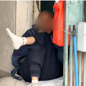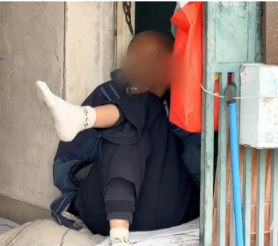 老人说,今年除夕自己突然被儿媳赶出了家门,所以无家可归,只能睡在楼道里。