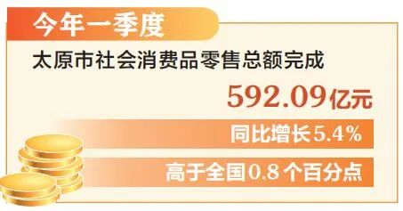近年来,太原市大力发展首发经济、银发经济、冰雪经济、赛事经济、演艺经济,挖掘、保护和传承具有太原特色的“中华老字号”品牌,布局建设高品质消费地标,更好满足多元化、个性化的服务消费需求。推动便利店品牌化、连锁化、智能化发展,便利店指数连续多年位居全国前列。天美杉杉奥特莱斯、龙城万达广场、吾悦广场等商业综合体相继建成运营。数据显示,今年一季度,太原市社会消费品零售总额完成592.09亿元,同比增长5.4%,高于全国0.8个百分点。