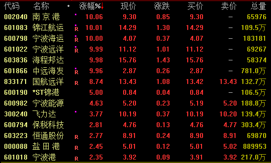值得注意的是,南京港、宁波海运、宁波远洋已连续3个交易日涨停。