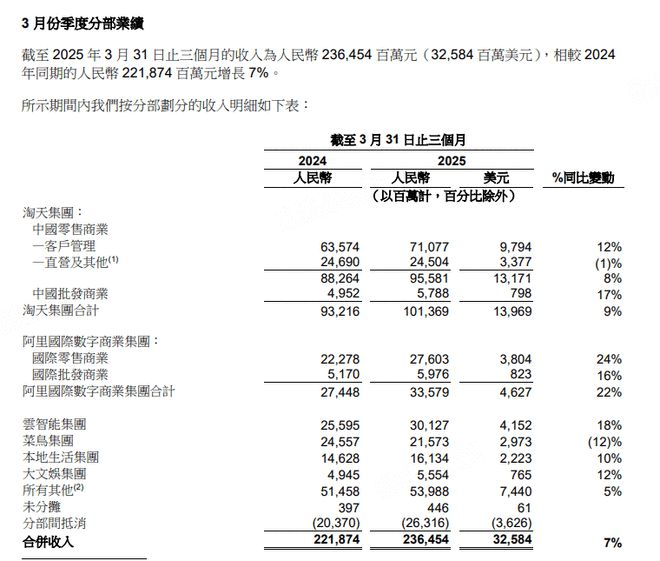 阿里巴巴发布2025财年Q4及全年财报:Q4营收2364.54亿元,同比增长7%
