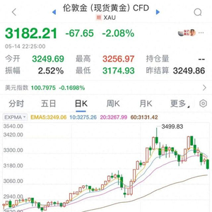 5月14日,现货黄金价格再次跳水,失守3200美元整数关口,一度跌至3180美元下方,日内跌超2%。纽约黄金期货也已跌近2%,跌破3200美元大关。