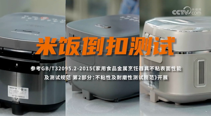 在这一求证中,央视网参考《家用食品金属烹饪器具不粘表面性能及测试规范》官方标准,开展了米饭倒扣测试。
