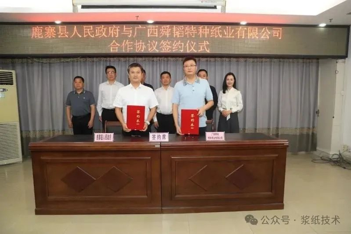 4月15日,广西鹿寨县人民政府与广西舜韬特种纸业有限公司举行合作协议签约仪式,标志着年产30万t特种包装材料建设项目正式落地鹿寨。