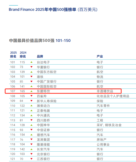 东鹏特饮荣登Brand Finance《2025年中国品牌价值500强》,排名跃升58位