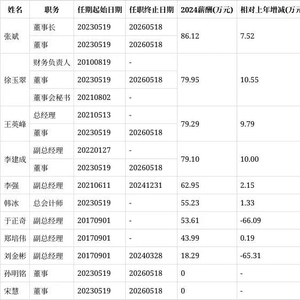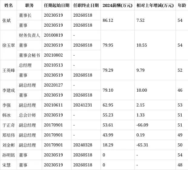 据金融界,2024年澳柯玛员工总数从2023年的6904人缩减至6609人,员工人均薪酬从12.25万元微调至12.03万元。但董事长张斌年薪却增长7.5万元至86.12万元。总经理王英峰也增长9.79万元至79.29万元。