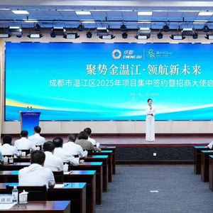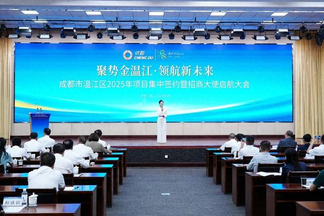 5月15日,成都市温江区召开“聚势金温江·领航新未来”2025年项目集中签约暨招商大使启航大会。近百家企业及行业商协会、金融机构共聚一堂、共话发展,共绘温江发展蓝图。