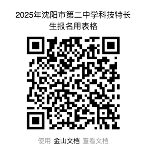 3.材料审核:学校将对学生提交的材料进行审核,审核通过的学生将获得参加专项素质评估的资格,审核结果将于5月16日16:30公布,请扫描“沈阳市第二中学2025年科技特长生报名材料审核结果查询”二维码查询结果。