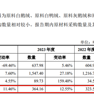 再对比一下前文提到的灰鸭绒的采购数量,2022年到2024年分别为323.55吨、364.16吨和405.9吨,三年合计仅为1094吨,相比同期灰鸭绒的消耗数量少了300吨以上。特别是2023年和2024年这两年,灰鸭绒的消耗数量,都比同年的采购数量多出了上百吨。