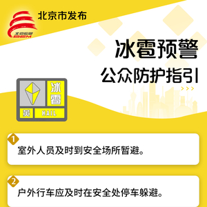 千龙网北京5月16日讯 据北京市突发事件预警信息发布中心最新消息,北京市气象台2025年5月16日09时15分发布冰雹黄色预警信号:预计16日15时至23时,受雷雨云团影响,北京市部分地区可能出现分散的冰雹,可能造成一定的损失,请注意防范。