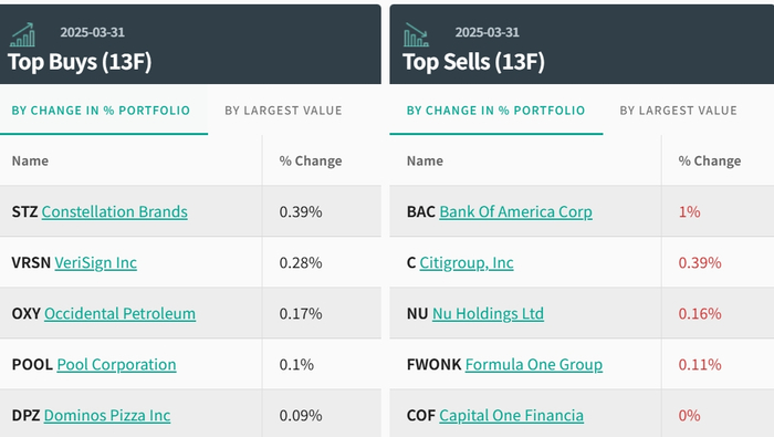 具体来说,伯克希尔在第一季度清仓了花旗集团(1463万股)和金融公司Nu Holdings,减持美国银行(4866万股),持仓比例从前一季度的11.19%下降至10.19%。