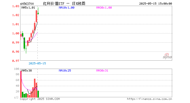 5月15日,红利价值ETF(563700)跌0.39%,成交额2281.92万元。当日份额减少1400.00万份,最新份额为1.07亿份。最新资产净值计算值为1.09亿元。