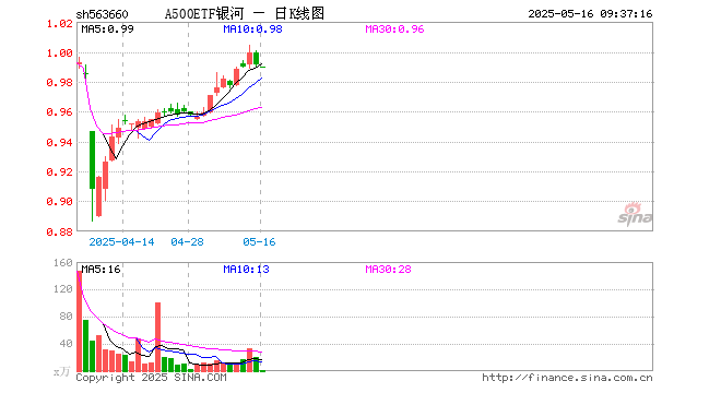 A500ETF银河(563660)业绩比较基准为中证A500指数收益率,管理人为银河基金管理有限公司,基金经理为黄栋,成立(2025-03-20)以来回报为-0.94%,近一个月回报为3.87%。