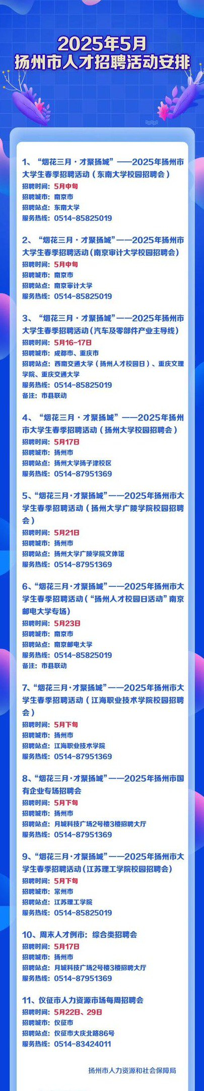需要求职的小伙伴们看过来!扬州5月招聘活动安排来啦,一起来看看有没有适合你的岗位!