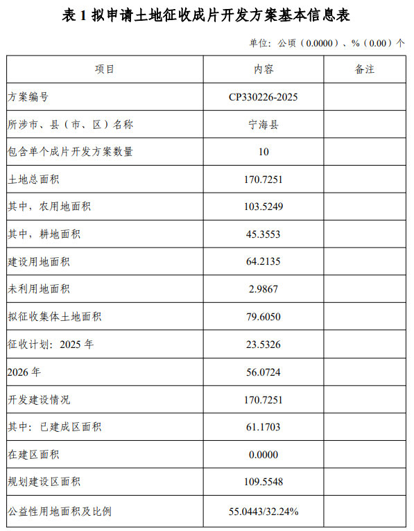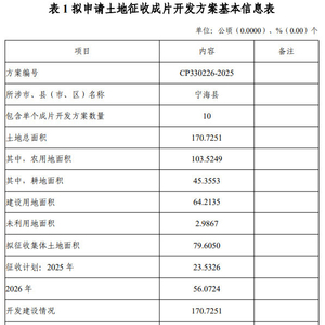 今天,记者从宁海县自然资源和规划局获悉,《宁海县2025年土地征收成片开发方案(征求意见稿)》(以下简称方案)完成编制,并公开征求意见。
