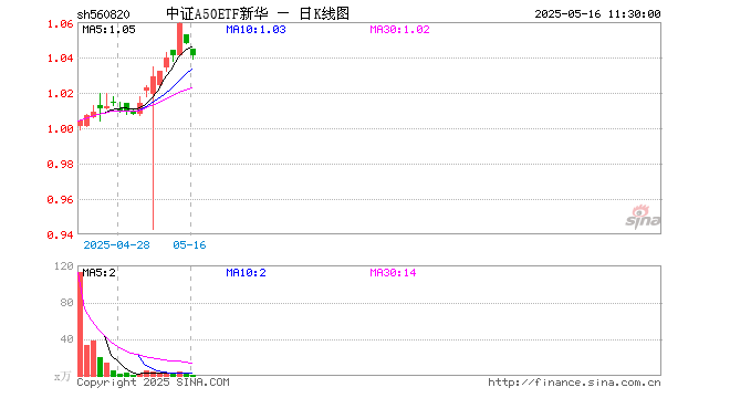 中证A50ETF新华(560820)跌0.67%,半日成交额52.63万元