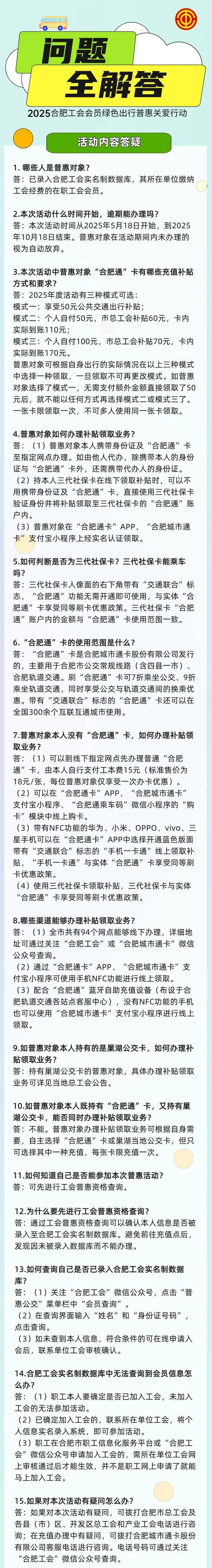 (四)工会会员公共交通出行补贴充值的“合肥通”卡种范围不包括学生卡(学生优惠卡和低保学生卡)和免费卡(敬老卡、军人卡、残疾人卡);