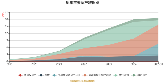 资产重大变化方面,截至2025年一季度末,公司货币资金较上年末减少75.02%,占公司总资产比重下降30.1个百分点;交易性金融资产合计较上年末增加5094030.73%,占公司总资产比重上升27.31个百分点;应收票据及应收账款较上年末增加9.34%,占公司总资产比重上升2.39个百分点;存货较上年末增加11.6%,占公司总资产比重上升0.92个百分点。