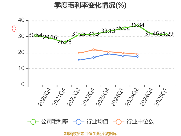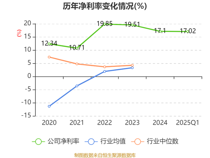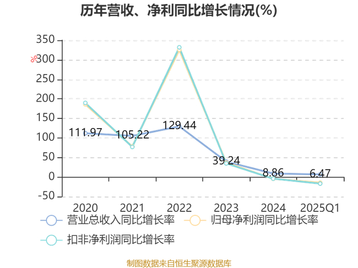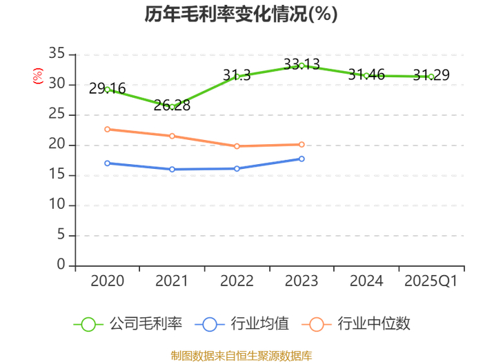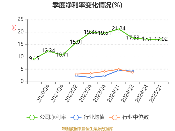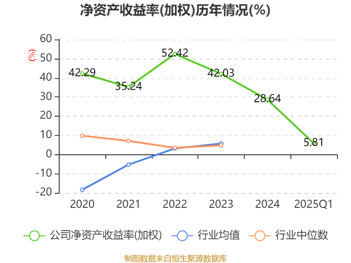 数据显示,2024年公司加权平均净资产收益率为28.64%,较上年同期下降13.39个百分点。2025年一季度公司加权平均净资产收益率为5.81%,同比下降3.18个百分点。