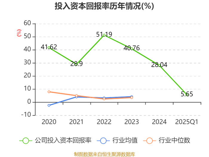 公司2024年投入资本回报率为28.04%,较上年同期下降12.72个百分点。2025年第一季度投入资本回报率为5.65%,较上年同期下降13.09个百分点。