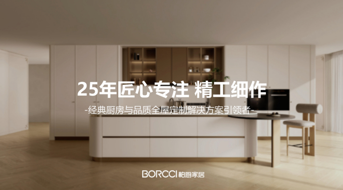 2025年,柏厨家居迎来了25周年的重要里程碑,在5月10日——第9个中国品牌日之际,正式发布品牌升维:BORCCI/柏厨家居,传承方太集团仁爱创新与卓越品质,25年匠心专注,精工细作,以“实用美学、精工细作、五心服务”为支撑,致力于成为经典厨房与品质全屋定制解决方案引领者,为顾客带来实用美学与卓越品质的精致居家生活。