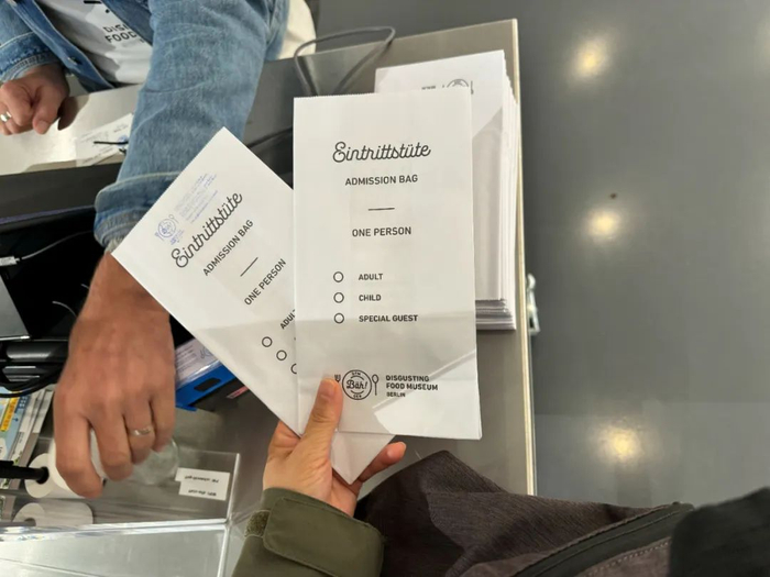 这是德国柏林“恶心食物博物馆”发放给参观者的“入场袋”(2024年9月15日摄)。新华社记者 黄燕 摄