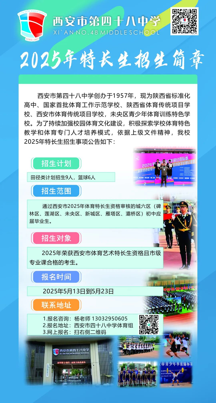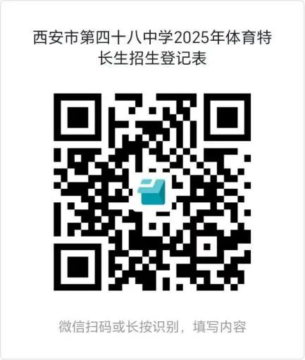 (一)2025年5月13日至5月23日24:00,有意向的考生微信扫码填写《西安市第四十八中学2025年体育特长生报名登记表》