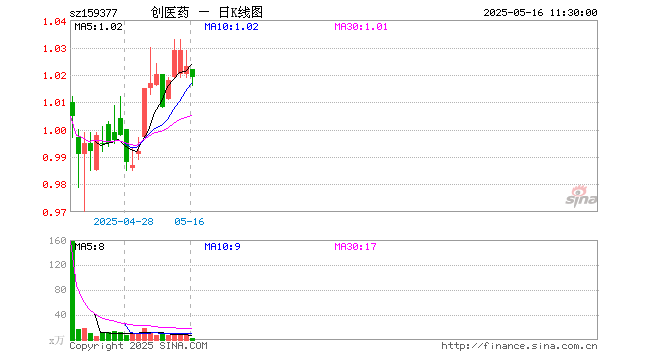 5月16日,截止午间收盘,创业板医药ETF国泰(159377)跌0.39%,报1.019元,成交额201.03万元。创业板医药ETF国泰(159377)重仓股方面,爱尔眼科截止午盘跌0.62%,迈瑞医疗跌0.65%,智飞生物跌0.21%,泰格医药跌2.40%,爱美客跌1.96%,康龙化成跌0.65%,新产业跌2.53%,沃森生物涨0.59%,贝达药业涨0.10%,乐普医疗涨0.00%。