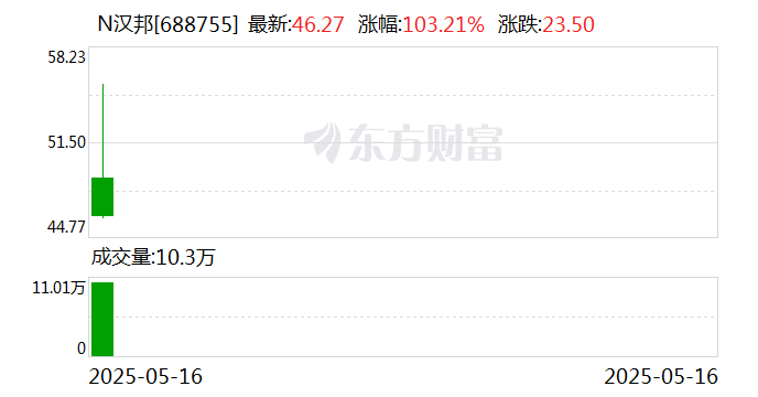中证报中证网讯(王珞)5月16日,江苏汉邦科技股份有限公司正式登陆上交所科创板。公司开盘价49元/股,上涨115.2%。