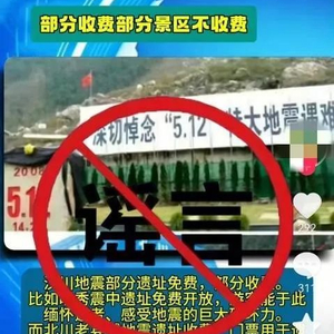 5·12北川老县城地震遗址收费?当地回应:该信息内容不实