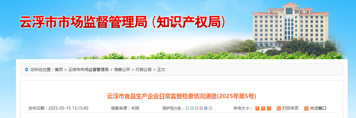 广东省云浮市食品生产企业日常监督检查情况通报(2025年第5号)