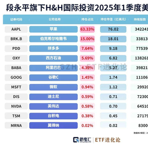 苹果是段永平的头号重仓股,截至2025年一季度末,其管理的H&H持有苹果的市值达76.02亿美金,持仓占比为63.33%,较上季度减持664.04万股;持有伯克希尔B的市值18.01亿美元,持仓占比为15%。