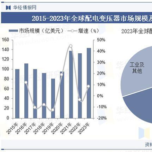 全球配电变压器市场增长的重要驱动因素是智能电网为市场供电和变压器行业的进步。2023年全球配电变压器市场规模达到143.21亿美元,同比增长8.12%。从细分市场结构来看,配电变压器主要应用产业为公共配电,2023年全球公共配电领域配电变压器市场规模达占比达七成。