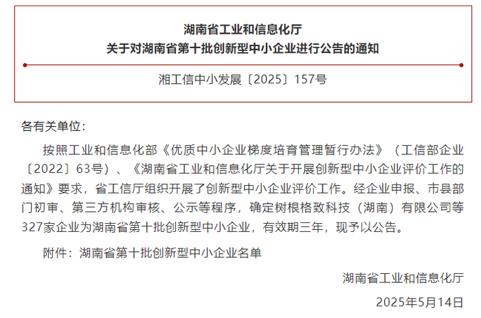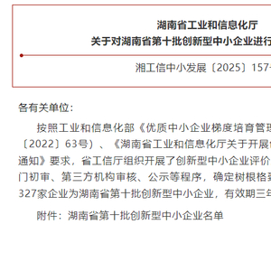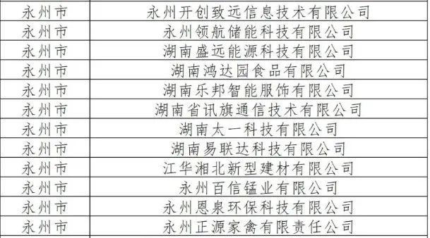 5月14日,省工信厅公布了湖南省第十批创新型中小企业名单,全省327家企业上榜,其中永州企业有12家。