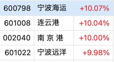集运期货合约价格的飙升,也带动航运港口概念股全线大涨,板块指数连续跳空高开高走,创半年多来新高,成交量较上周急速增加200%以上。国航远洋周最高涨幅一度超过100%,即使后续有所回落,周涨幅仍高达逾89%,宁波海运、宁波远洋、南京港、连云港等均连续4日涨停。