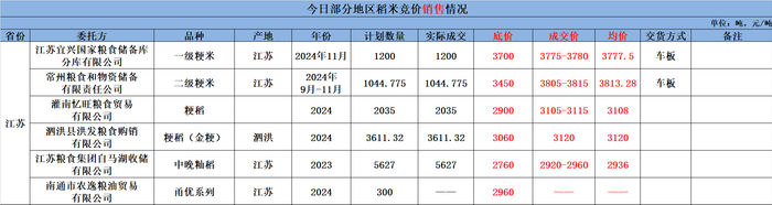 5月16日江苏省地方稻米交易结果
